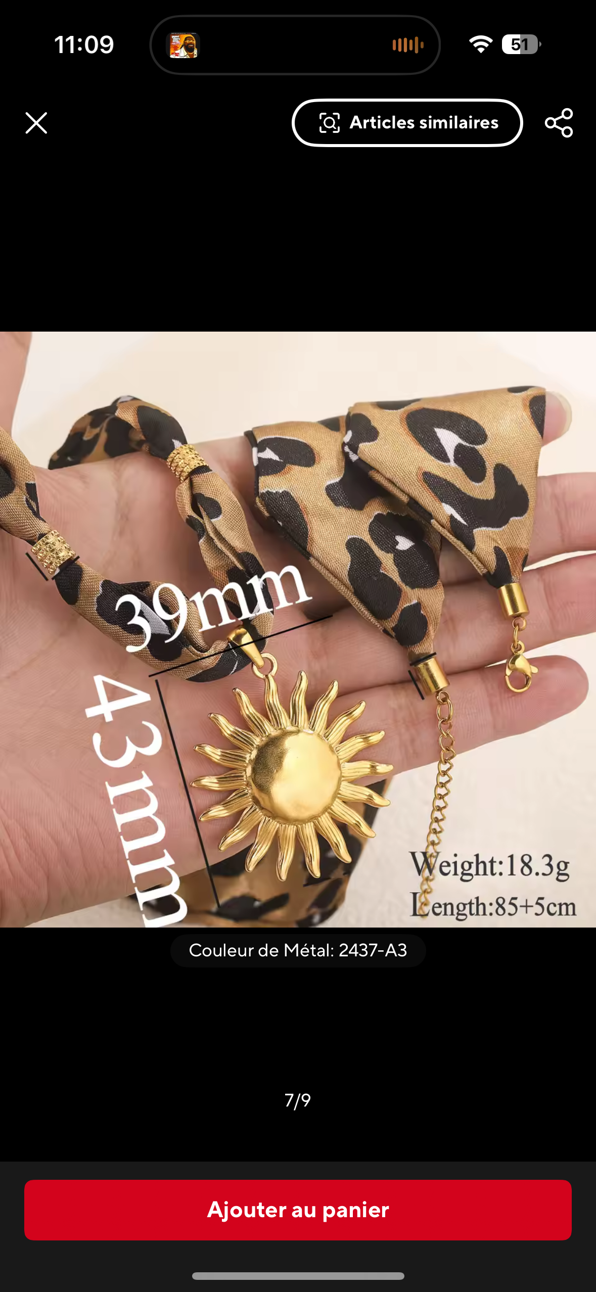 Avec son ruban effet léopard et son pendentif doré en forme de soleil et de cœur, il capture toute la chaleur et la lumière d’une femme confiante.