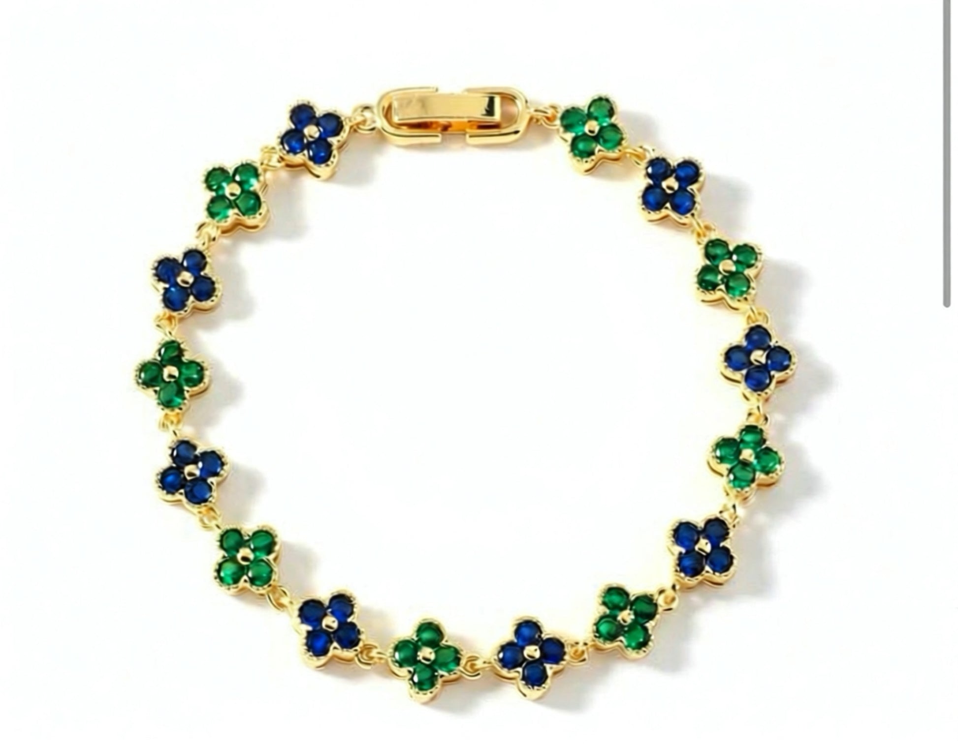 L’alliance de ces teintes précieuses évoque les mosaïques orientales et les eaux cristallines de la Méditerranée. Disponible en finition dorée ou argentée, Azélia illumine le poignet avec grâce et caractère.