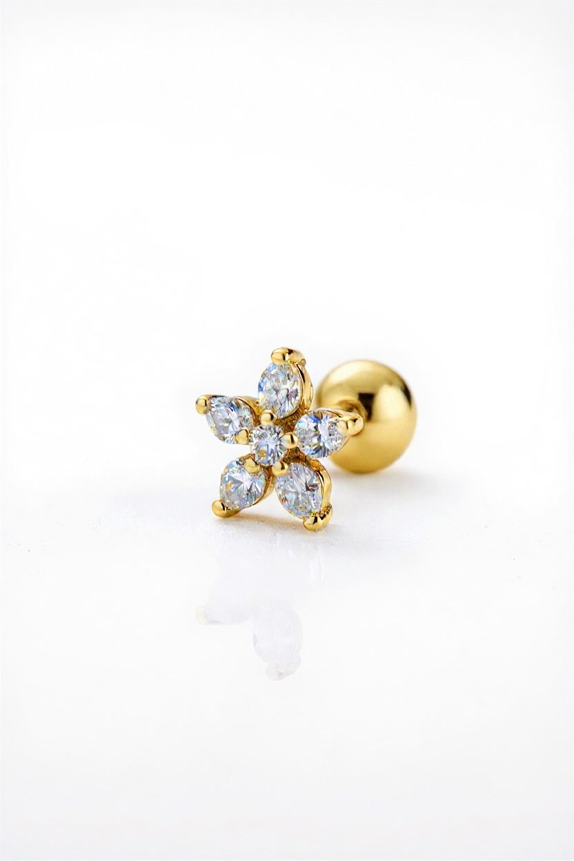 Son design raffiné évoque la beauté naturelle et la grâce intemporelle — un bijou qui illumine l’oreille d’un éclat doux, subtil et féminin.
