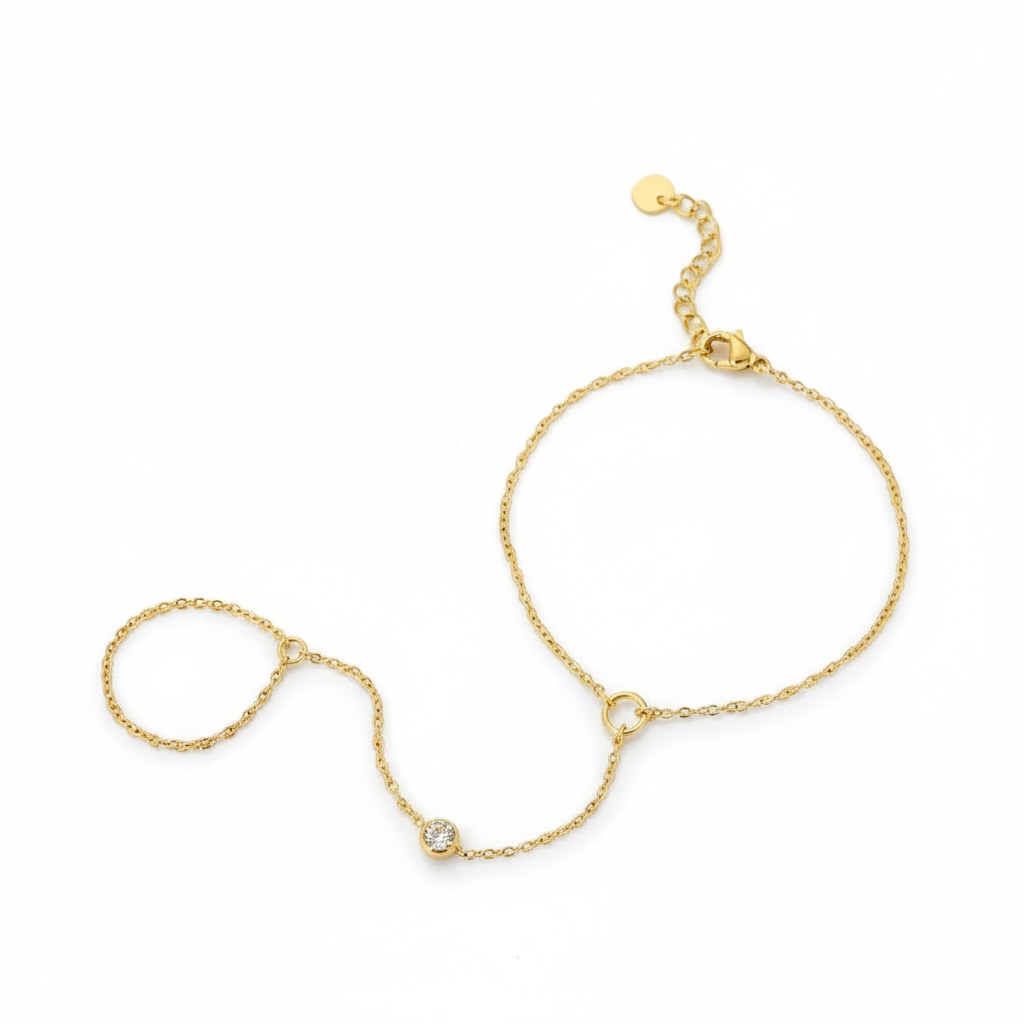 La chaîne de main Sérélia incarne la féminité dans sa forme la plus pure. Réalisée en acier inoxydable de haute qualité et sublimée par un plaquage or fin, elle relie poignet et doigt dans un design raffiné et minimaliste. Chaque mouvement révèle son éclat doré, pour un bijou à la fois discret et captivant.