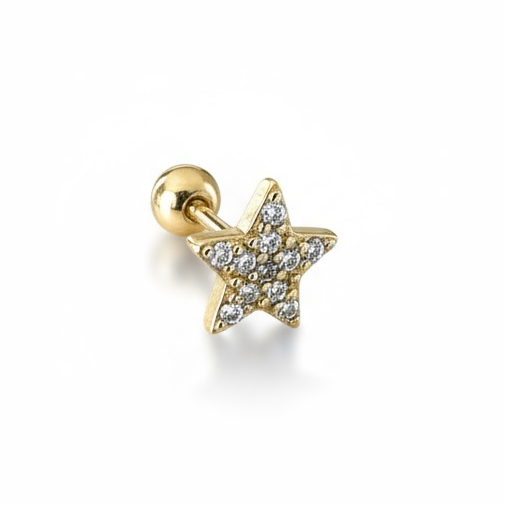 Sa forme d’étoile délicatement sertie de zircons étincelants reflète la lumière à chaque mouvement, créant un éclat aussi élégant que discret.